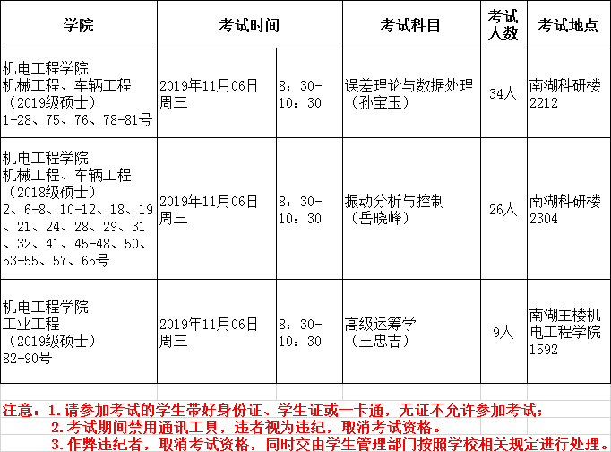 金沙城js9线路检测中心2019-2020-1后半学期硕士研究生课程考试安排