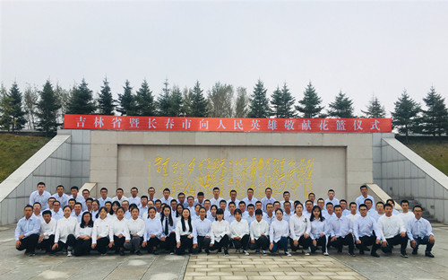 秋雨初歇,松柏苍翠。上午9时,长春烈士陵园庄严肃穆,吉林省暨长春市向人民英雄敬献花篮仪式在此举行。我院2019级新生在辅导员宗老师的组织带领下参加敬献花篮仪式,瞻仰烈士纪念碑,表达对革命先烈的深切缅怀和崇高敬意。