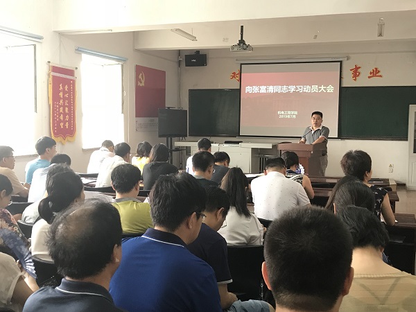 本网讯(通讯员 王潇猇)7月12日,金沙城js9线路检测中心召开向张富清同志学习动员大会,会议由学院党委书记李奇涵主持,学院全体教师参加了会议。
