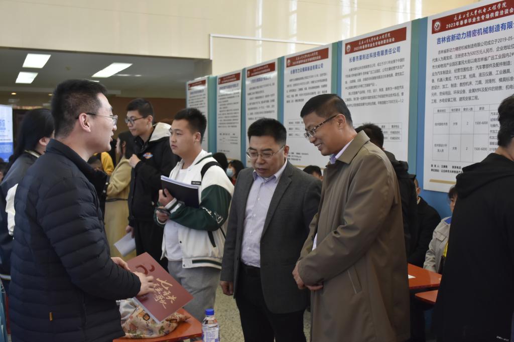 副校长郭世强到场指导并与部分用人单位代表进行交流。学院班子成员、各系主任、毕业班辅导员深入现场询问了解企业发展情况、招聘岗位、毕业生投递简历情况等,听取他们对学校人才培养、专业设置、就业服务等方面的意见建议,并现场推介毕业生。