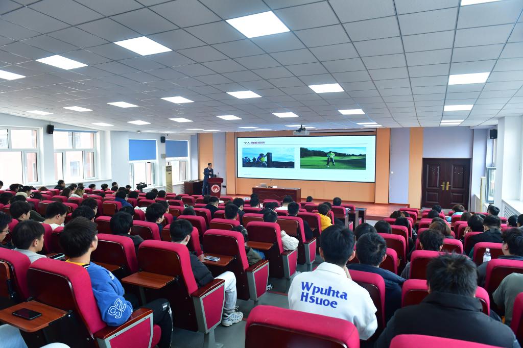 郭长旺老师通过现场调查、学生发言等互动的方式开启了此次报告会,他结合自身成长经历和工作心得,从华为的企业文化及人才管理的特点谈起,用丰富的经验、生动的事例、通俗的语言引导同学们从职业定位、职业能力、职业类型等多个维度出发,教会大家如何组合个人的爱好、能力及社会需求等因素从而做出适合自己的选择,并希望同学们尽早确定职业发展目标,珍惜当下,勤学好进,努力适应新时代新形势。