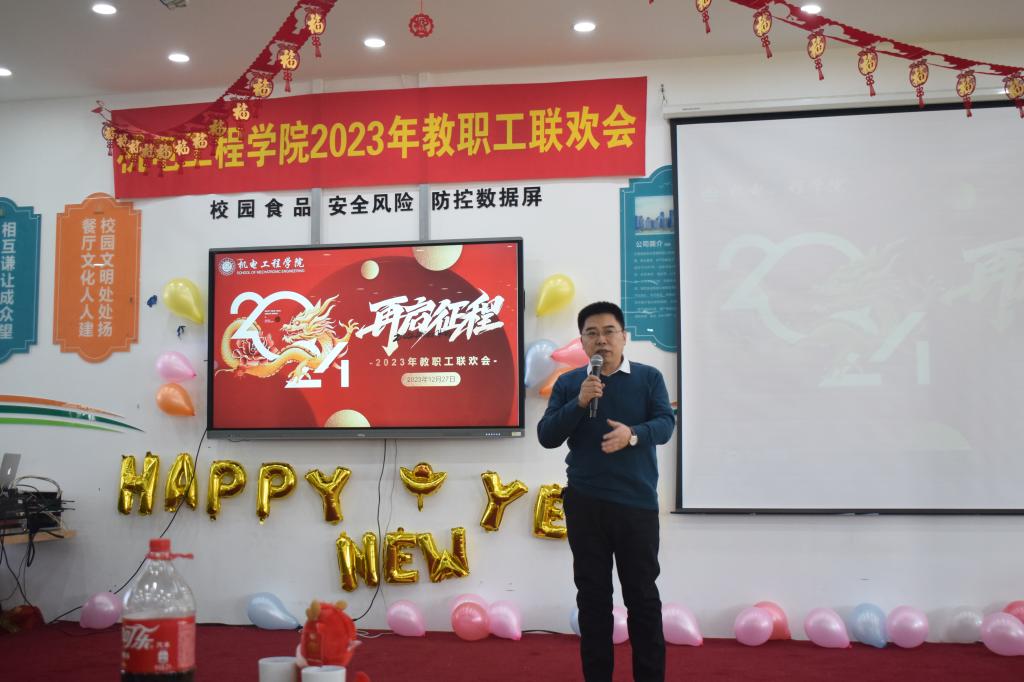 郭校长致新年贺词,对学院多年来取得的优异成绩给予了肯定,并向所有老师表达了关切慰问及新年祝福。学院党委书记李奇涵总结了学院2023年取得的丰硕成果,对全体老师付出的辛勤劳动表示由衷的感谢和敬意,并预祝学院新的一年里各项工作更上一层楼。