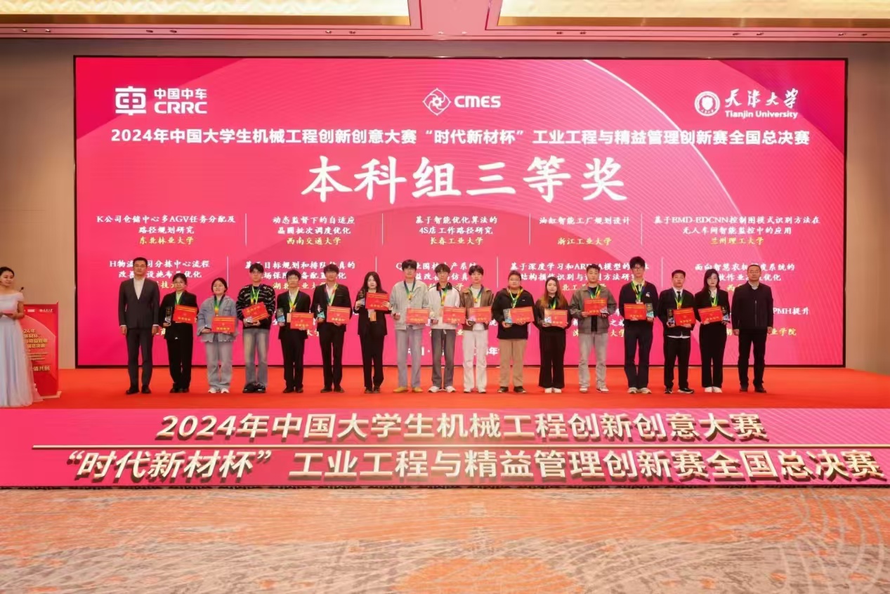 本网讯(通讯员 白俊峰)11月2-3日,2024年中国大学生机械工程创新创意大赛“时代新材杯”工业工程与精益管理创新赛全国总决赛在天津大学圆满举办,我院工业工程系参赛团队荣获国家三等奖。