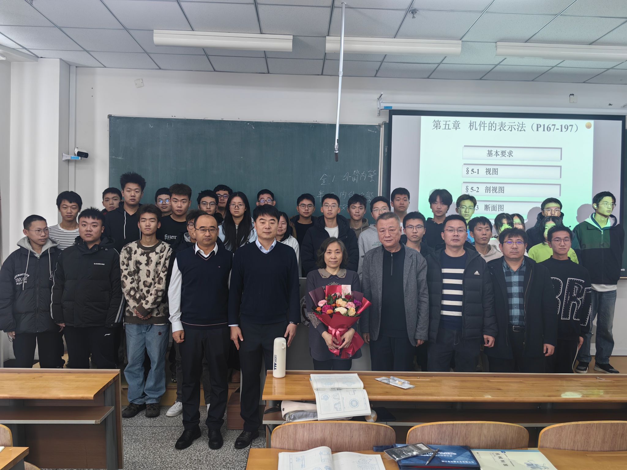 本网讯(通讯员 毛艳)为致敬荣休教师,弘扬师德力量,传承育人使命,11月26日,在宫百香、李会杰两位教师执教生涯的最后一节课上,金沙城js9线路检测中心为其精心筹备了一场温馨的“最后一课”荣休仪式。学院党委书记张利军、院长郝兆朋、副院长谷东伟、副院长卢明明、机械基础教学中心主任刘小勇一起来到课堂,与全体上课学生共同见证了这一光荣时刻并送上美好祝愿。