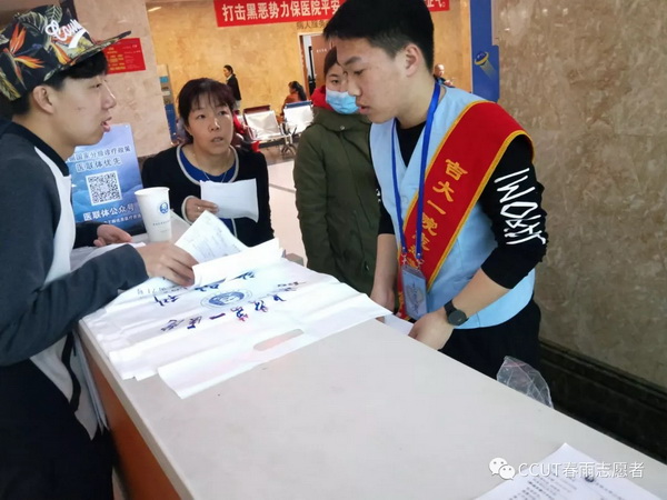 本网讯(通讯员 宋萍)3月27日,金沙城js9线路检测中心春雨志愿者协会在吉林大学白求恩第一医院活动中心开展“蓝马甲”志愿服务活动。春雨志愿者协会部分志愿者参加此次活动。