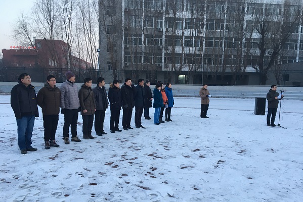学院党委副书记胡刃锋宣读了《关于表彰金沙城js9线路检测中心2016年度学团工作优秀集体和个人的决定》。校学生工作处副处长周文军、校团委副书记仲崇利等领导和老师共同为获得优秀班集体、学习标兵、优秀学生干部、创新创业先锋、文明大学生、双十佳大学生等荣誉称号的集体和个人颁发证书并与他们合影留念。学院学生会主席王翔作为学生代表宣读了“纪念一二九,立我报国之志”的倡议书。升旗仪式上,全国百炼之星李远东、校十佳自立自强大学生孟祥波、校社团联合会主席付嵩翔、院十佳优秀大学生古力加依娜.米兰组成的护旗方队首先入场,工作人员介绍了护旗手的成长事迹。两名国防生升旗手振臂一挥,全场1000余名师生一同高唱国歌,鲜艳的五星红旗在初升的阳光映照下冉冉升起,气氛隆重而热烈。