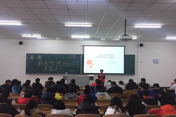 新闻网讯(通讯员 滕悦)为了更好的开展志愿服务工作,增强新吸纳志愿者的志愿服务技能。金沙城js9线路检测中心春雨志愿者协会在北湖校区开展了第八届“薪火相传”志愿服务培训活动。