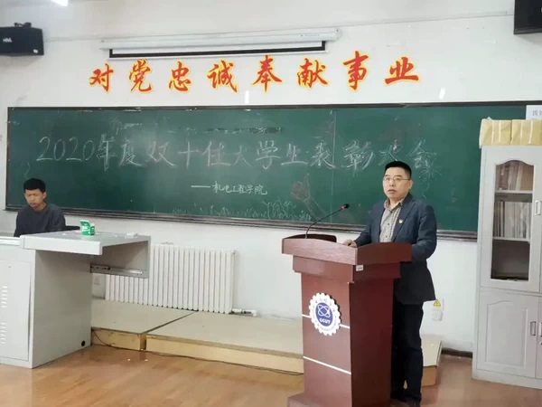 最后,李奇涵书记上台讲话,他首先向受到表彰的同学表示了祝贺,鼓励他们要珍惜荣誉,坚守信念,不忘初心,奋发有为,希望广大机电学子能够汲取榜样的力量,努力向前,以更好的成绩迎接党的百年华诞。