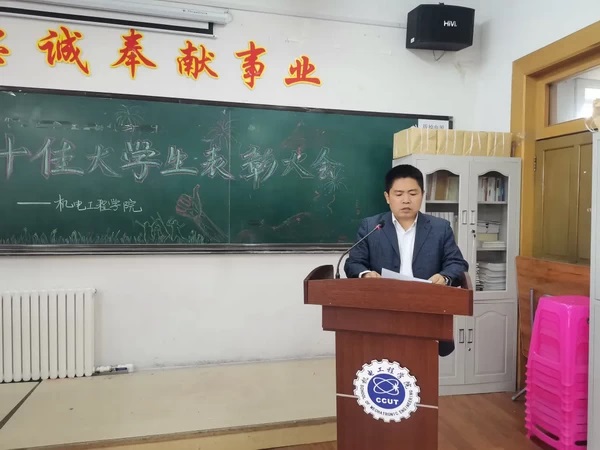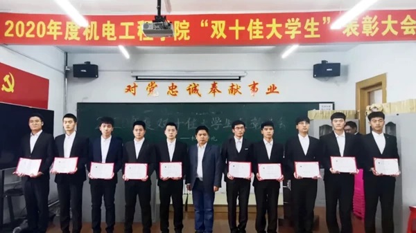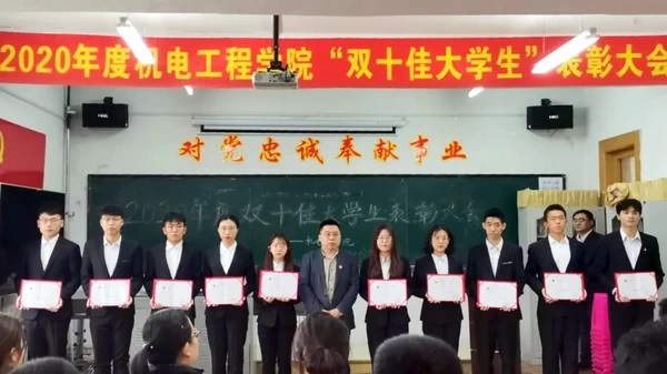 会上,首先由党委副书记黄向东宣读了金沙城js9线路检测中心关于表彰“十佳优秀大学生”和“十佳自强自立大学生”的决定。然后由学院领导为二十位获奖同学颁发证书和礼品。2019级学生王嘉懿作为受到表彰的“双十佳大学生”代表发言,在发言中他表达了对学院的感激之情,并表示要用自己的实际行动来展现新时代机电学子昂扬的精神风貌。