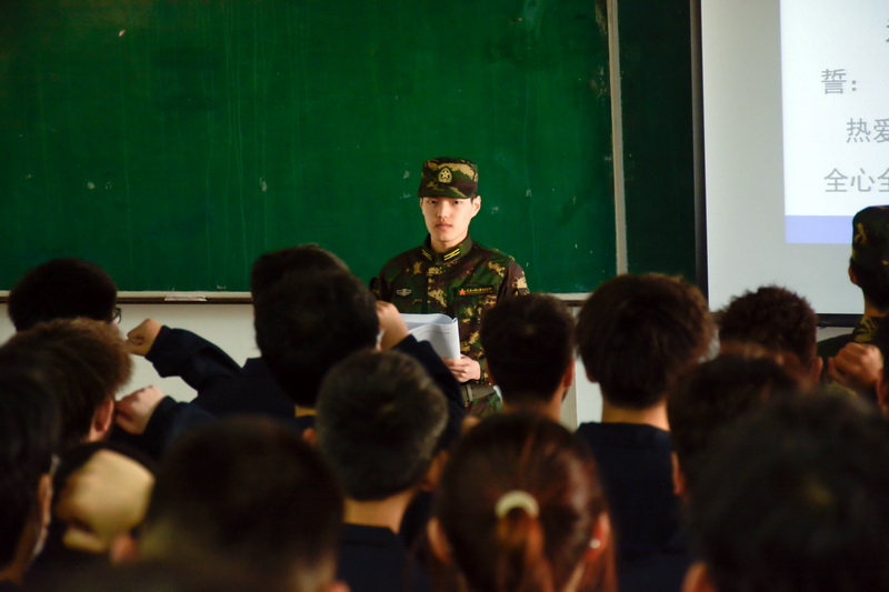 宣誓完毕,200101班张晨原代表全体新生进行了发言,他表示将服从命令、听从指挥,锻炼自身意志,苦练基本功,严格要求自己,发扬军训优良作风,为今后的学习生活打下良好的基础。