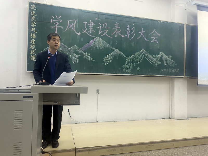 最后,岳晓峰院长进行了总结讲话。首先,他肯定了这一学年学风建设活动所取得的成绩,并指出每一位老师和同学都应该深刻认识,深刻理解新发展阶段学风建设面临的新形势、新任务、新要求,努力实现学院学风建设的发展再上新台阶。岳院长向学生提出四点希望:一是要端正学习态度,明确学习目标,做好职业生涯规划。二是全体学生党员、学生干部要起到学风建设模范带头作用。三是要充分发挥班级体在学风建设中的重要作用。四是要扎实课程学习,积极参与科技创新活动。希望全体学生能够坚持理想、诚实守信、勤于思考、拼搏奋斗,为加强学院优良学风建设做出应有的贡献!